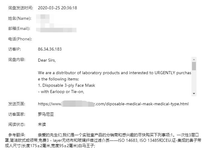 关于效果,我们可以明显发现,口罩等防疫用品上线推广仅仅几天时间,就开始陆续有询盘进来!